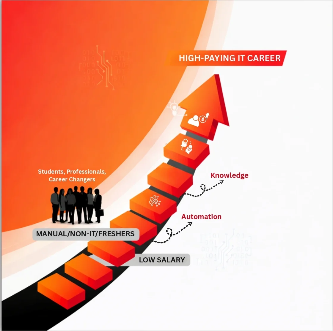 We help individuals transition from Manual Testing to Automation, Non-IT to IT, and low salary packages to high-paying IT roles by providing complete end-to-end skill development and 100% placement support.